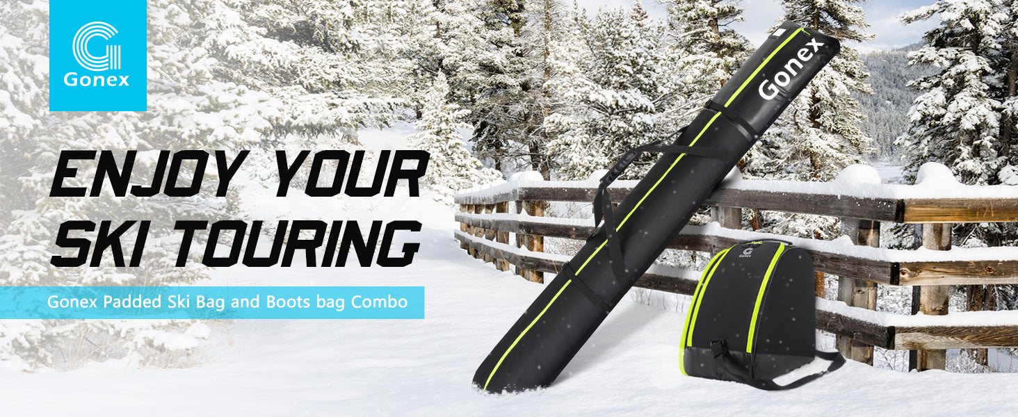 Praktisch und reisefreundlich: Mit einem robusten Tragegriff sind diese Taschen für einfachen Transport konzipiert und sorgen für ein stressfreies Reiseerlebnis. Egal, ob Sie einen Skiausflug unternehmen oder Ihre Ausrüstung aufbewahren möchten, die Kombination aus gepolsterter Skitasche und Schuhtasche von Gonex ist eine zuverlässige Wahl für begeisterte Skifahrer.