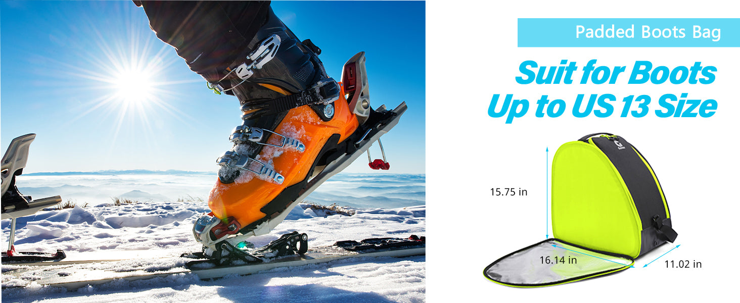 - Geräumig: Passend für die meisten Skischuhe bis Größe 13