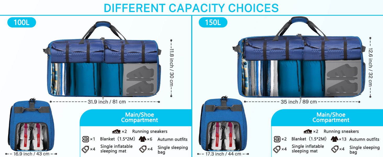 Amplia capacidad de 150 l: con su generosa capacidad de 150 l, la bolsa de fin de semana extragrande Gonex es la compañera perfecta para tus necesidades de viaje. Ofrece un amplio espacio en su espacioso compartimento principal y dos bolsillos separados, lo que garantiza que puedas llevar todo lo que necesitas para tu viaje.