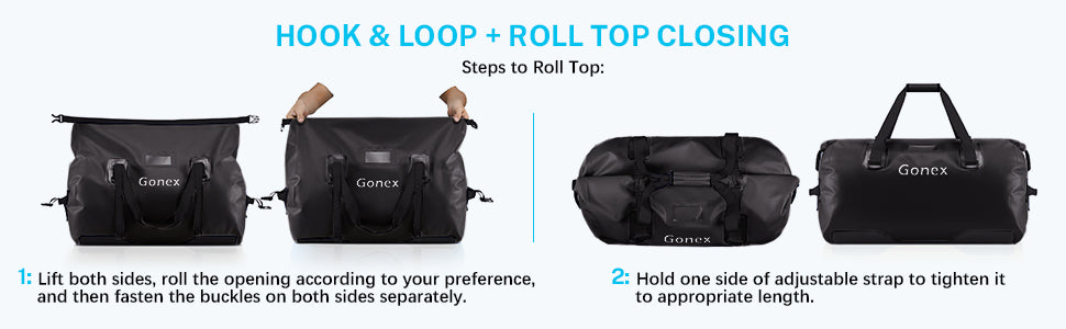 Altamente resistente al agua: la BOLSA DE VIAJE MILITAR Gonex está fabricada con PVC duradero de alta resistencia, lo que proporciona una protección completa contra el agua y la nieve para sus pertenencias. La parte superior que se enrolla fácilmente y el cierre de velcro garantizan un sellado hermético, manteniendo sus artículos secos incluso en condiciones de humedad.