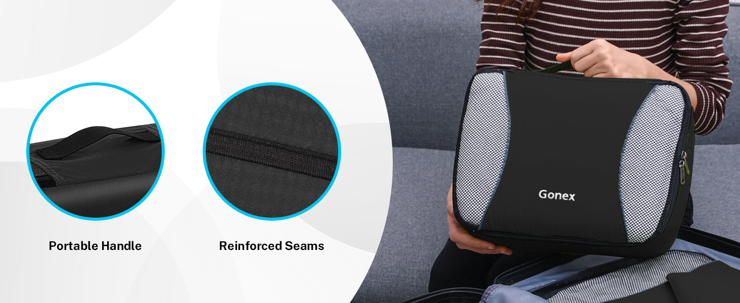 Tu compañero de viaje definitivo: ya sea que se trate de unas vacaciones familiares, un viaje de negocios, una escapada al aire libre o un almacenamiento diario, los cubos de embalaje Gonex son tu compañero de viaje versátil. Lleva tus artículos esenciales de viaje al siguiente nivel y disfruta de la alegría de viajar organizado y sin estrés.