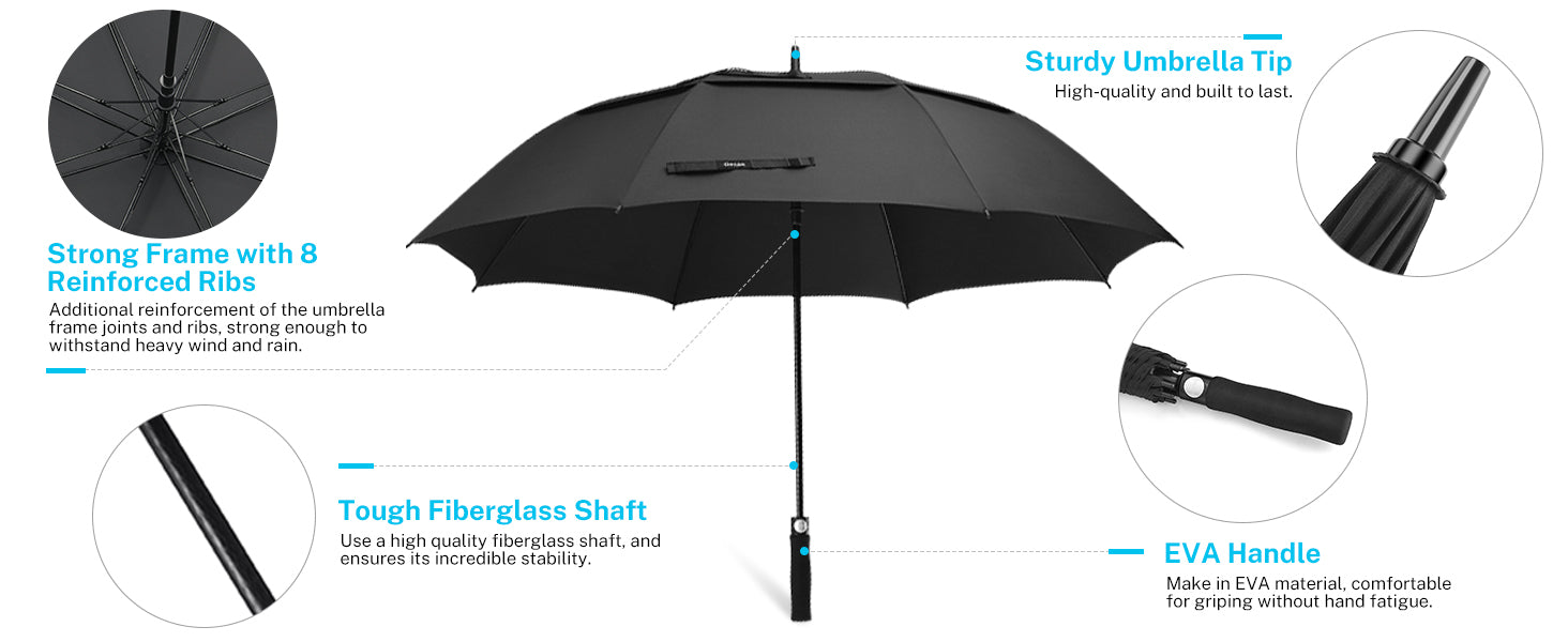At Gonex, we engineer our big umbrellas to stand the test of time. For the ribs and tips, we use fiberglass, which is flexible and durable, ensuring that our umbrella is built to last. Comes with 1 umbrella sleeve for easy storage, you can take it with you wherever you go. Choose Gonex 68 Inch Golf Umbrella, and stay protected in style.