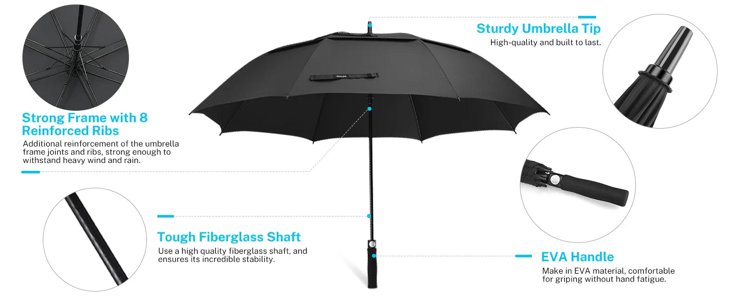 - Built to last through countless storms, this umbrella showcases expert engineering with flexible fiberglass tips and ribs that maintain their integrity over time. It's the perfect blend of durability and practicality, backed by Gonex's commitment to quality craftsmanship.