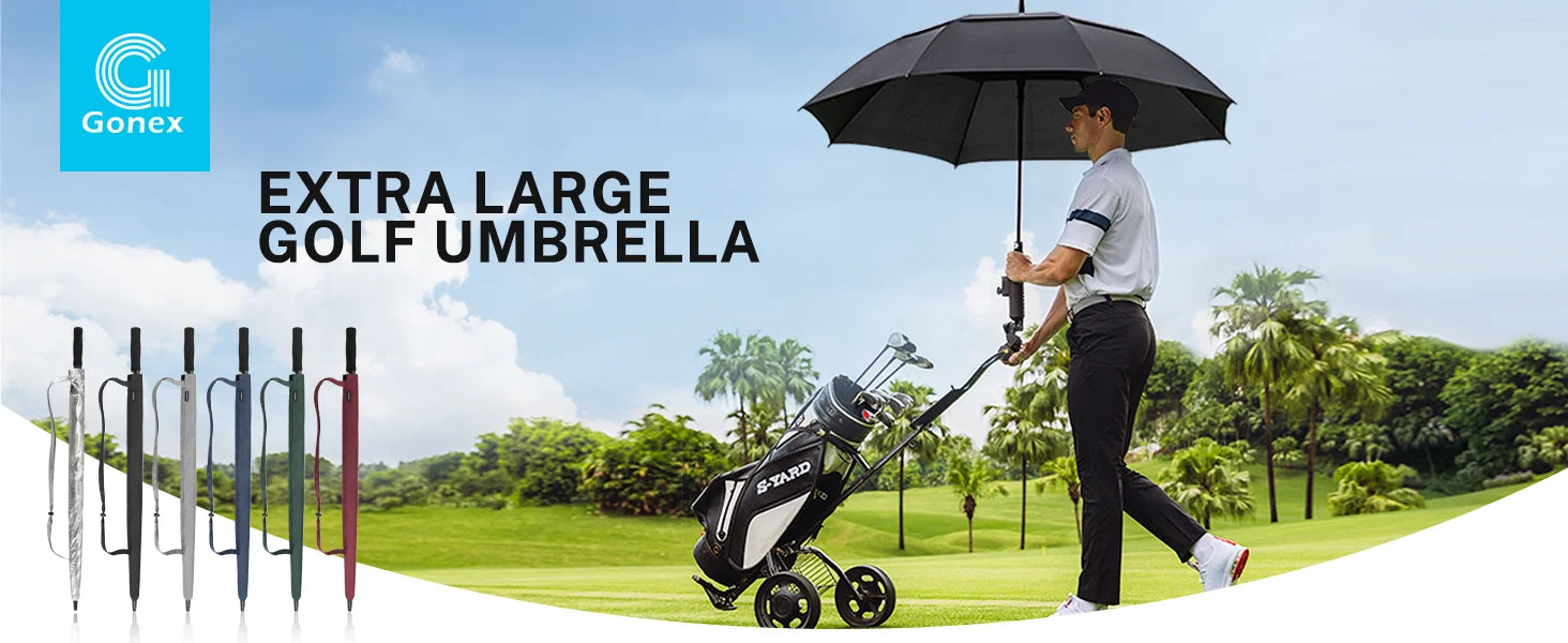 - Experience maximum coverage with the Gonex 72-inch golf umbrella, featuring an impressive 65-inch diameter that comfortably shelters up to 4 people. Whether you're on the golf course, attending outdoor events, or heading to business meetings, this oversized umbrella ensures you and your companions stay dry in style.