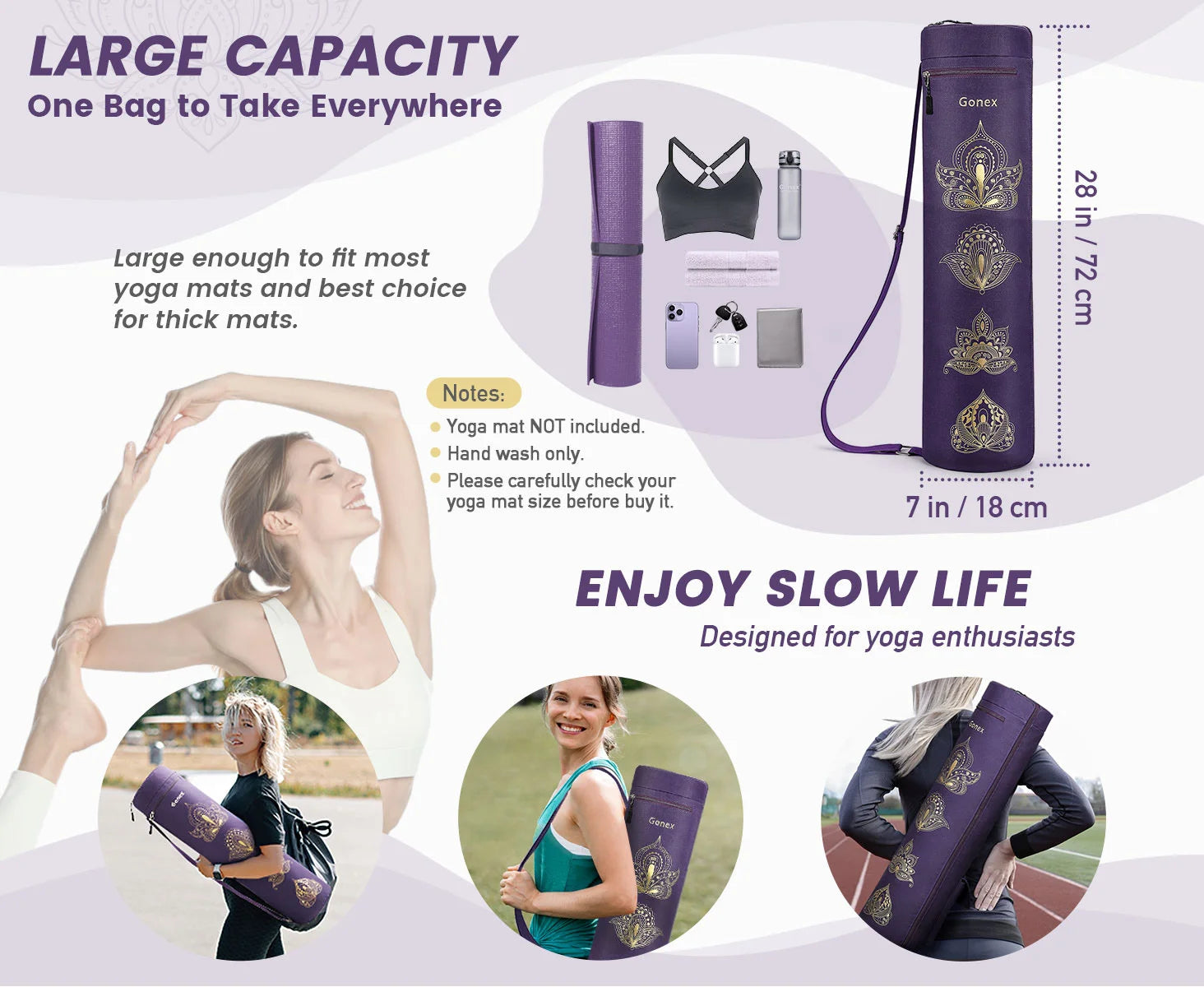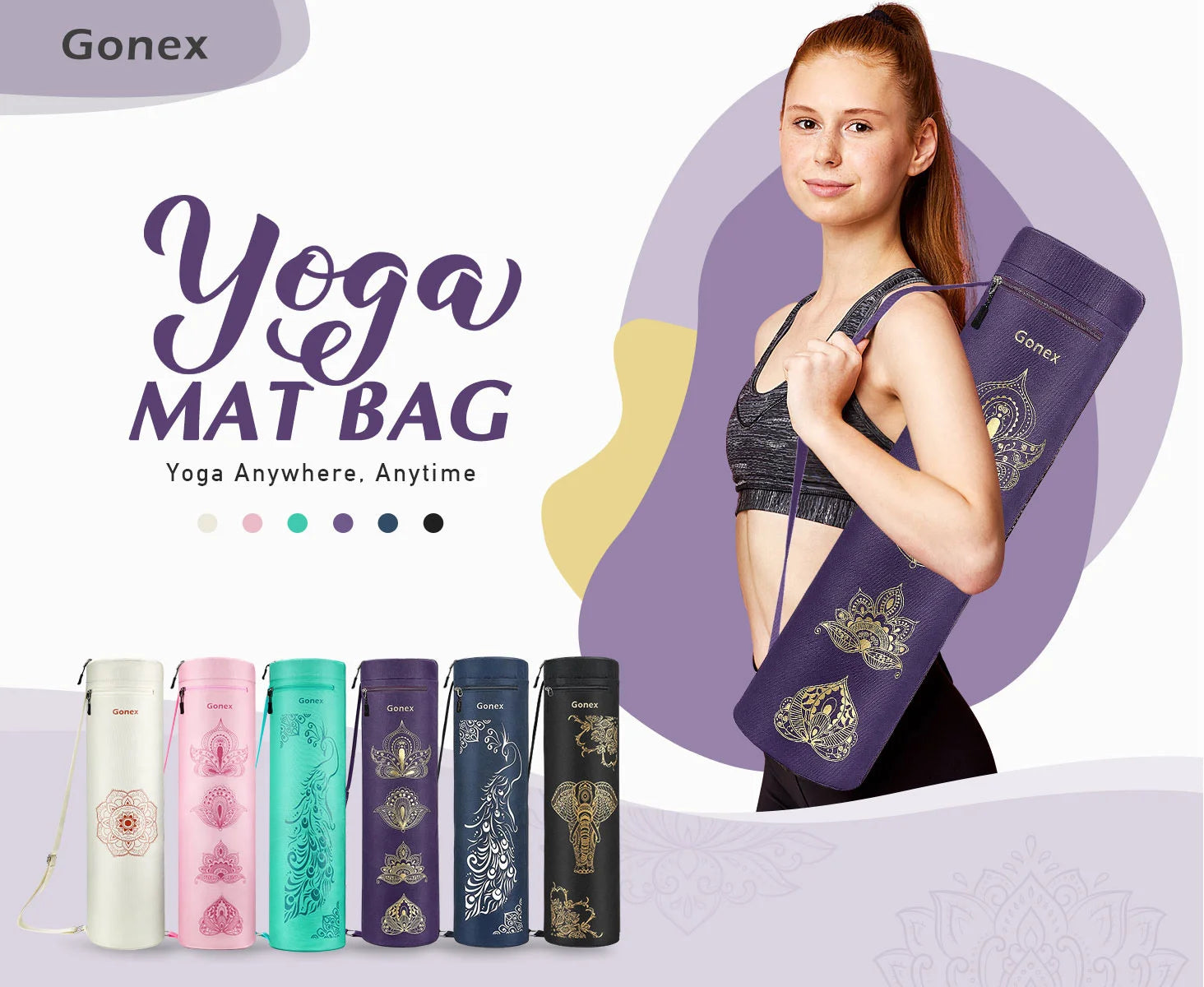 - Elevate your yoga journey with the premium Gonex Yoga Mat Bag, crafted from high-performance 600D oxford cloth and featuring 210D reinforced stitching. This water-resistant carrier ensures your mat stays protected, while premium SBS zippers guarantee lasting durability for your daily practice.