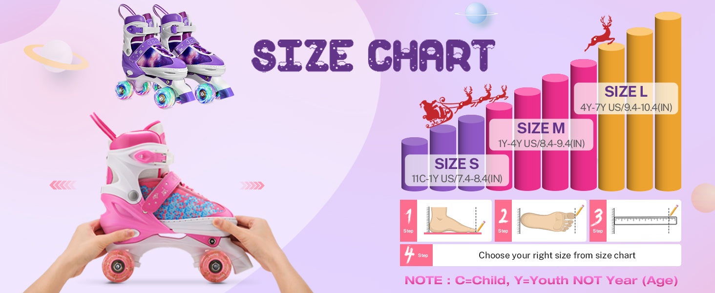 Adjustable Roller Skates: Gonex roller skates feature an easy-adjustable push button, allowing you to adjust the size to accommodate growing feet. With 4 different size options and 3 available sizes (S/M/L), these skates are perfect for kids who need flexibility and room to grow.