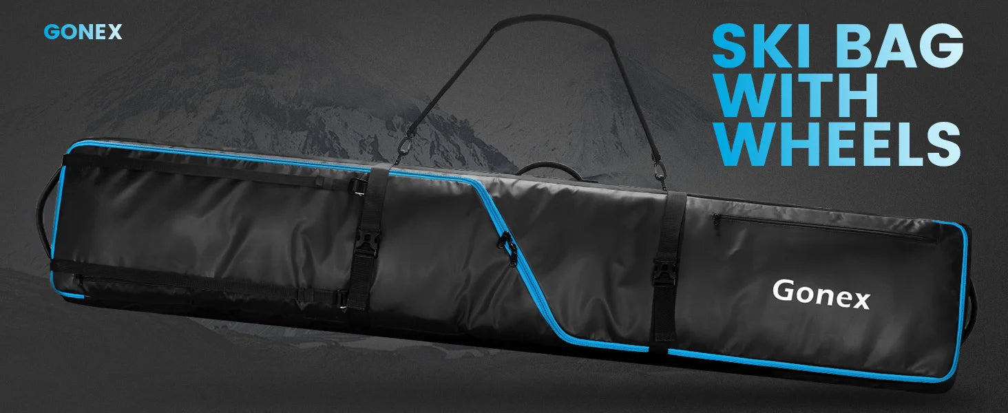 - Hit the slopes with confidence using the Gonex Wheelie Snowboard Bag, featuring robust 10 cm wheels that smoothly roll through parking lots, airports, and lodges. This versatile carrier adapts to your gear with an adjustable length from 175-190 cm, perfect for various board sizes and ski setups.