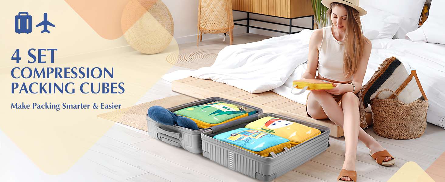 - SPACE-SAVING PACKING CUBES: Gonex Compression Packing Cubes feature a compression zipper design that removes air, allowing you to save up to 30% more space in your suitcase.