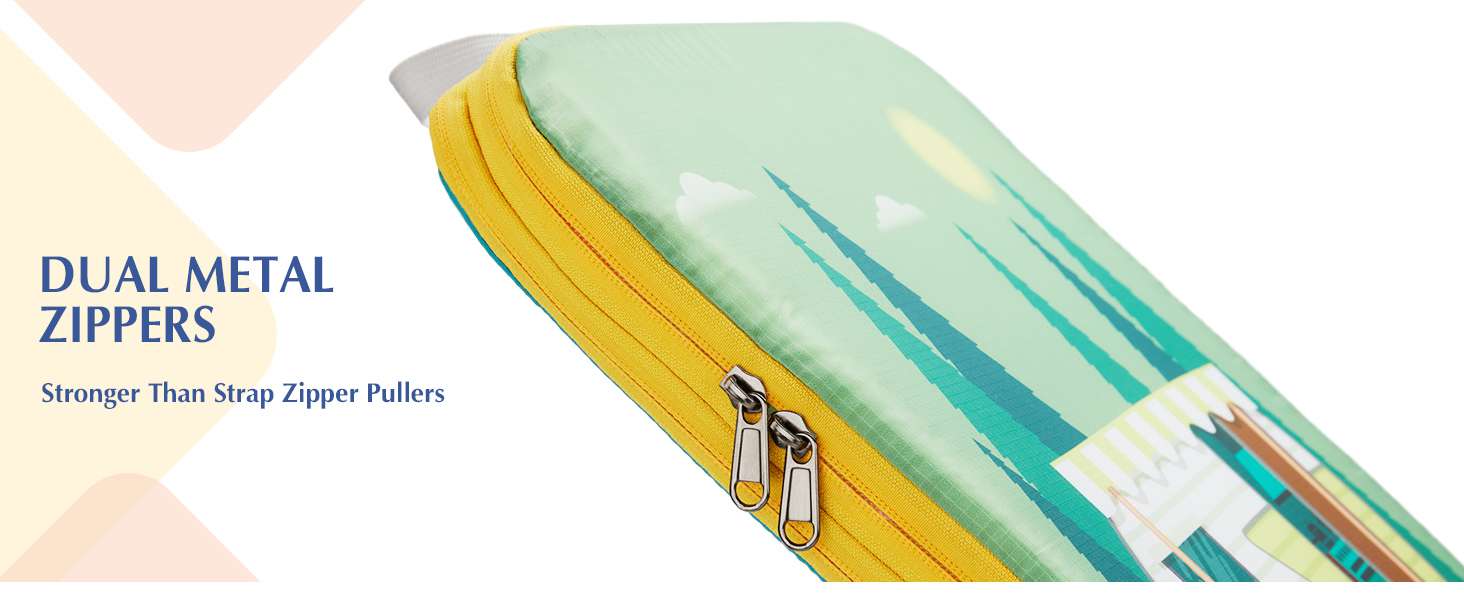 These packing cubes have two zippers, one for full size and the other for compression. They are designed to save space.